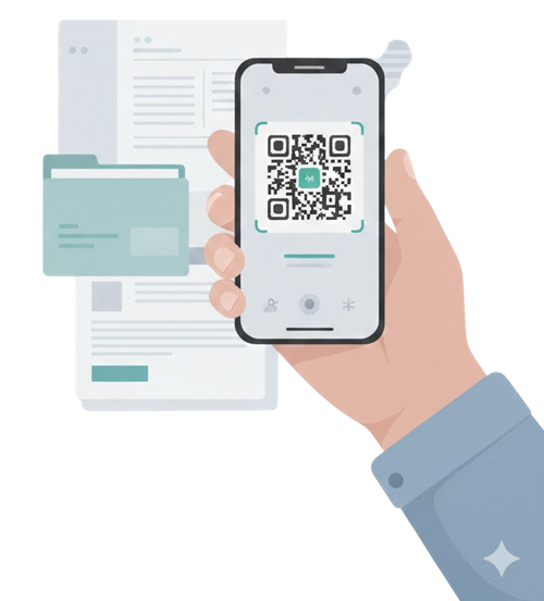 Un QR public permet de vérifier le dossier en un scan, à tout moment.
